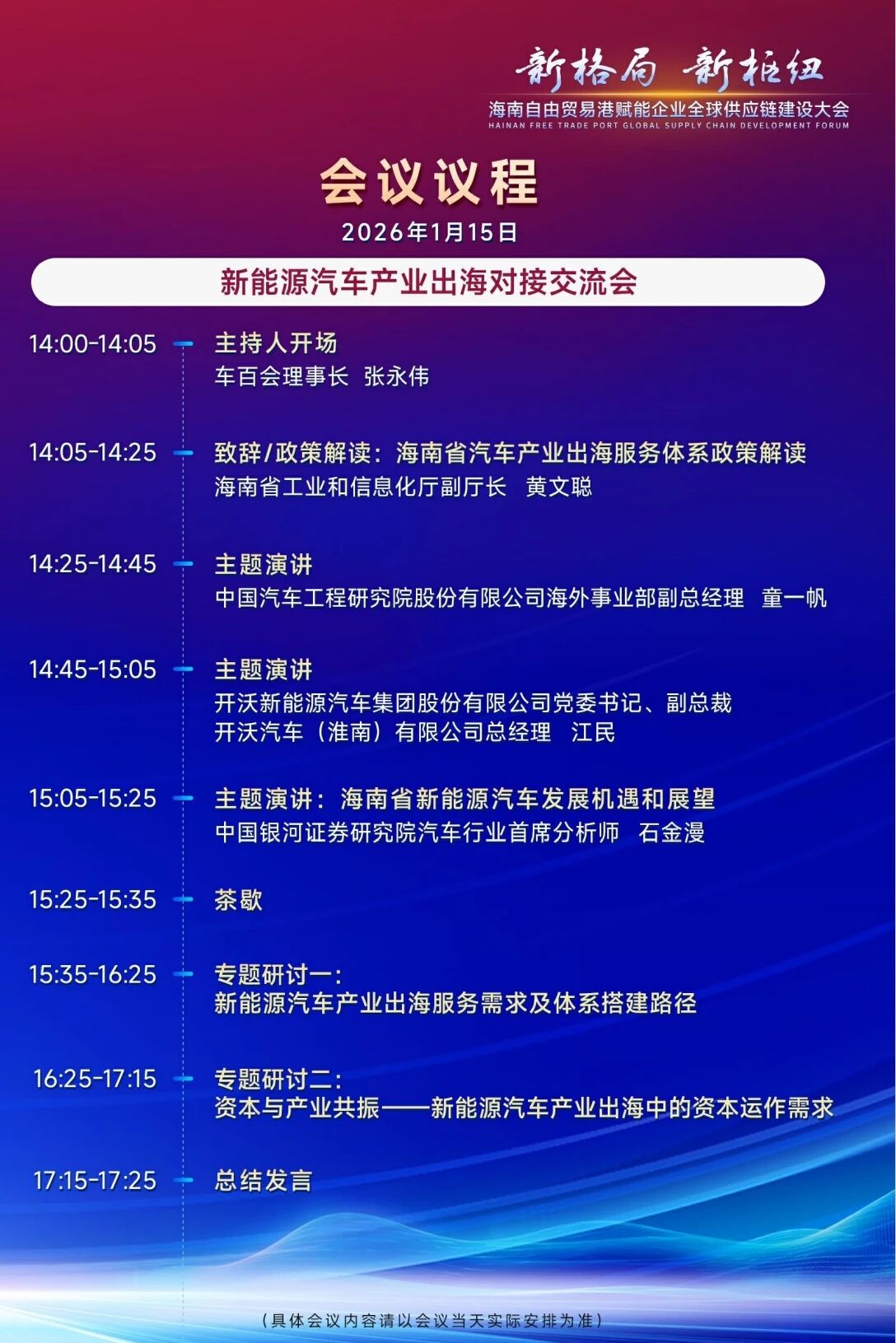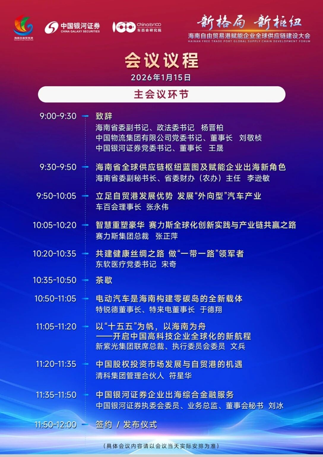 为深入贯彻落实党中央关于加快建设具有世界影响力的中国特色自由贸易港的战略部署,充分发挥海南在全球供应链中的区位优势与制度型开放潜力,进一步提升我国企业在全球产业链、供应链中的资源配置能力与国际化竞争力,值此全岛封关运作新起点,“新格局・新枢纽 —— 海南自由贸易港赋能企业全球供应链建设大会” 今日在海南省海口市盛大开幕。
