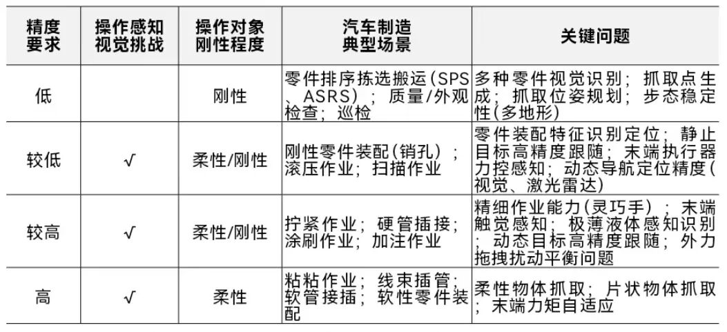 《报告》指出,汽车产业有望成为智能机器人迈向产业成熟的重要突破口,原因在于汽车制造规模大、链条长、场景多,且自动化基础较好,环境相对固定。但除上述数据、标准、安全等共性问题外,该场景还面临两大特有挑战: