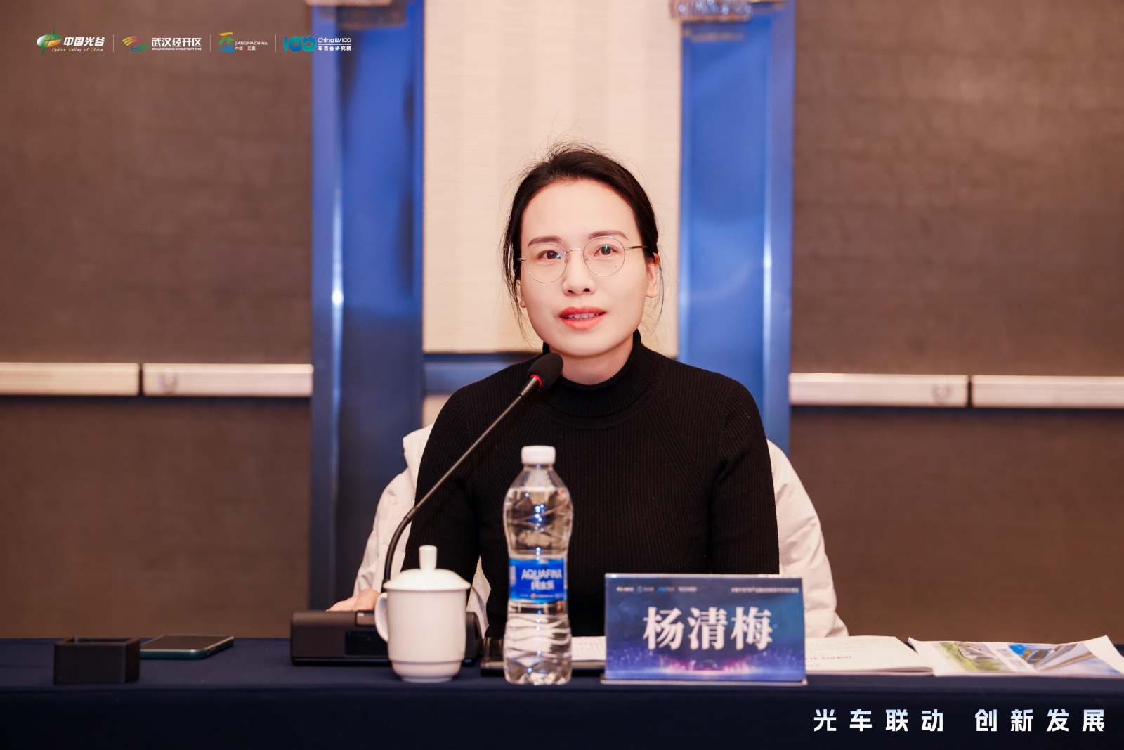 武汉光谷智能网联科技有限公司董事长杨清梅介绍了光谷在交通、能源、数据三大板块的资源优势,可为企业提供测试验证、数据支撑、场景落地等全链条服务。期待携手各方企业布局智能网联、光储充、低空经济等领域,创造产业发展新价值。