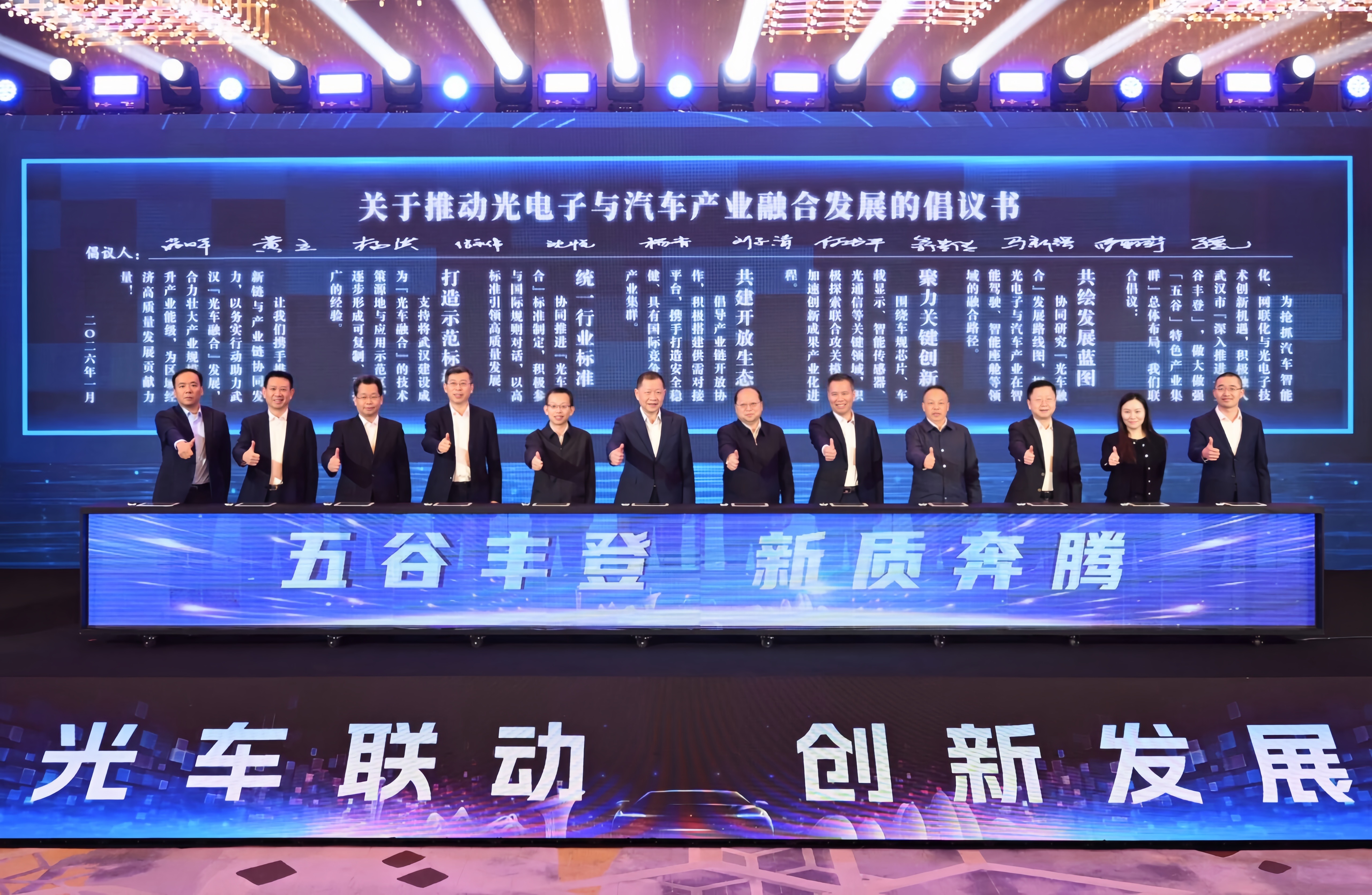 为加快推动光电子与汽车产业深度融合,充分释放两大领域的协同发展潜力,2026年1月18日,在武汉举办的“光电子与汽车产业融合发展创新大会”上,车百会研究院联合东风汽车、中国信科、航盛电子、华工科技、联想、博世华域、芯擎科技、高德红外等整车、零部件及光电子产业链企业代表,以及来自东湖高新区、武汉经开区、江夏区政府代表,汇聚政策引导、整车牵引、技术支撑与行业协同四方力量,共同发起“推动光电子与汽车产业融合发展的倡议”。