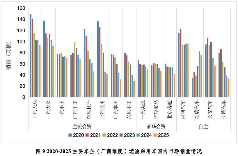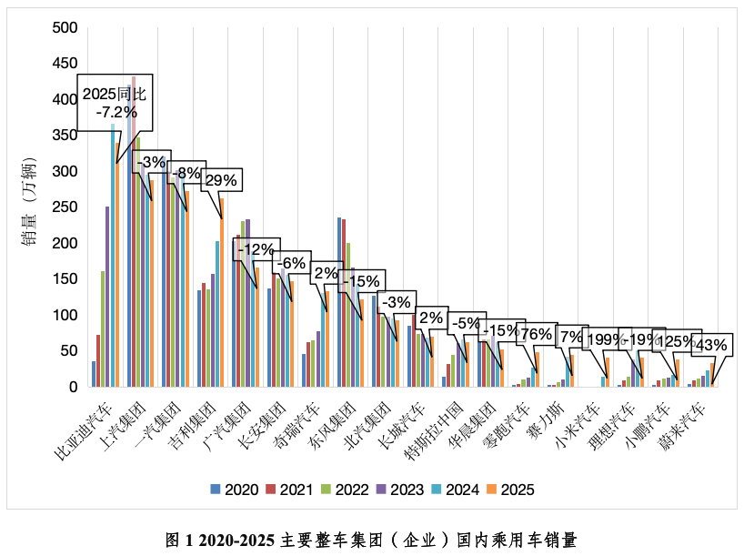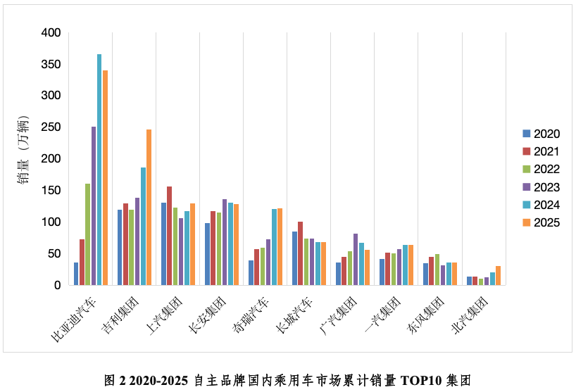 前言:本文基于2020-2025年间国内乘用车终端上险数据,从企业集团、品牌阵营、动力类型三个维度进行了梳理,并对市场总体发展形势与企业竞争格局展开分析。