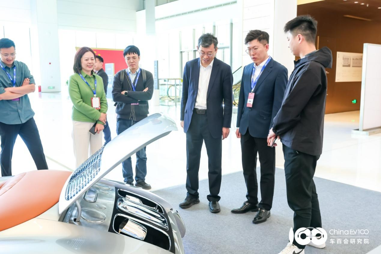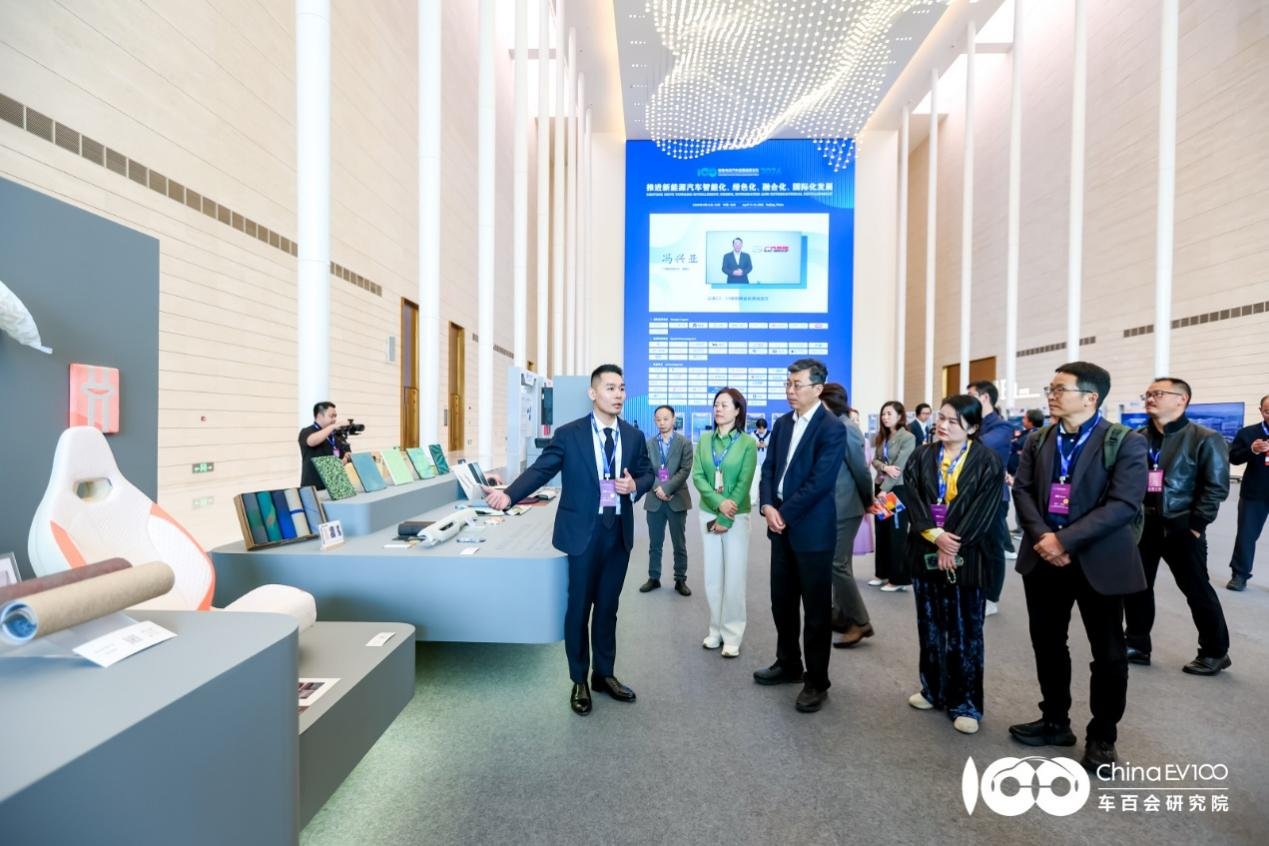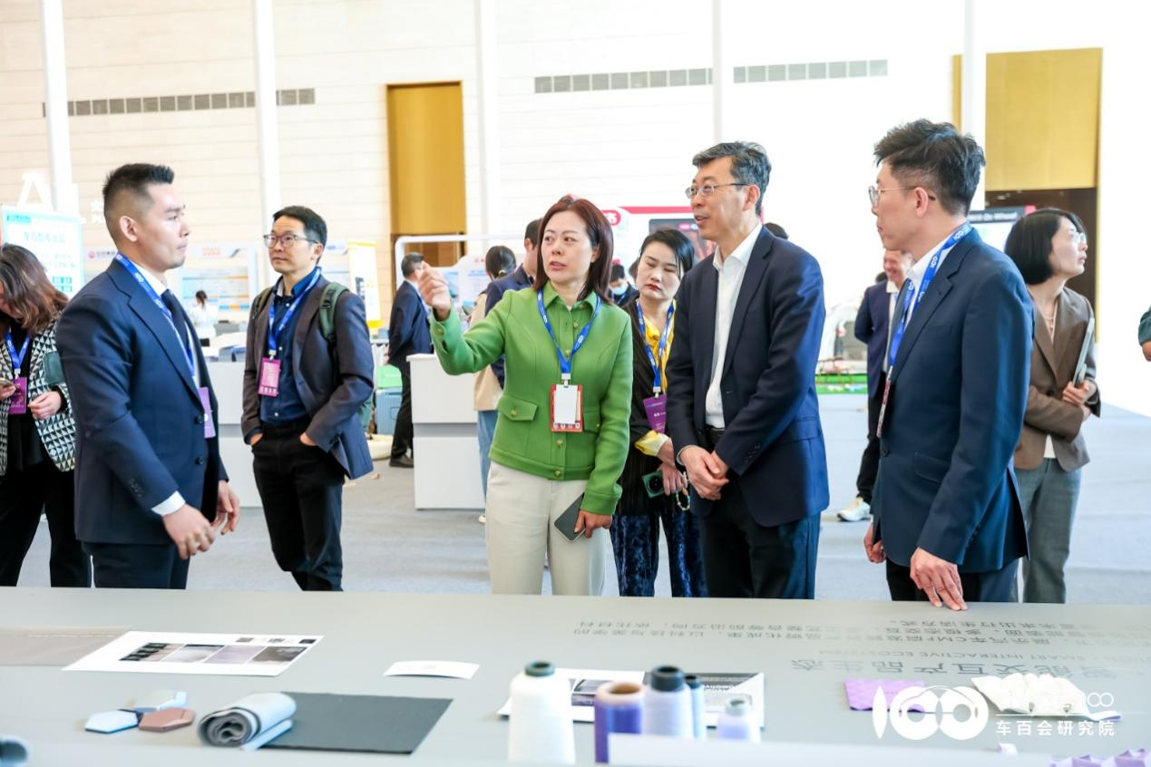 论坛期间,与会领导和嘉宾参观了由上海智慧出行设计谷、设计星所Innohub·X、科美CMF创研中心共同打造的“驰美新生·汽车生活美学展”,深刻感受到当代座舱作为生活美学实践空间的创新价值。上海国际汽车城上海智慧出行设计谷执行董事、总经理徐婷婷和上海智慧出行设计谷设计星所Innohub·X所长高懋森、设计总监张文浩依次对展品设计理念及应用作介绍。