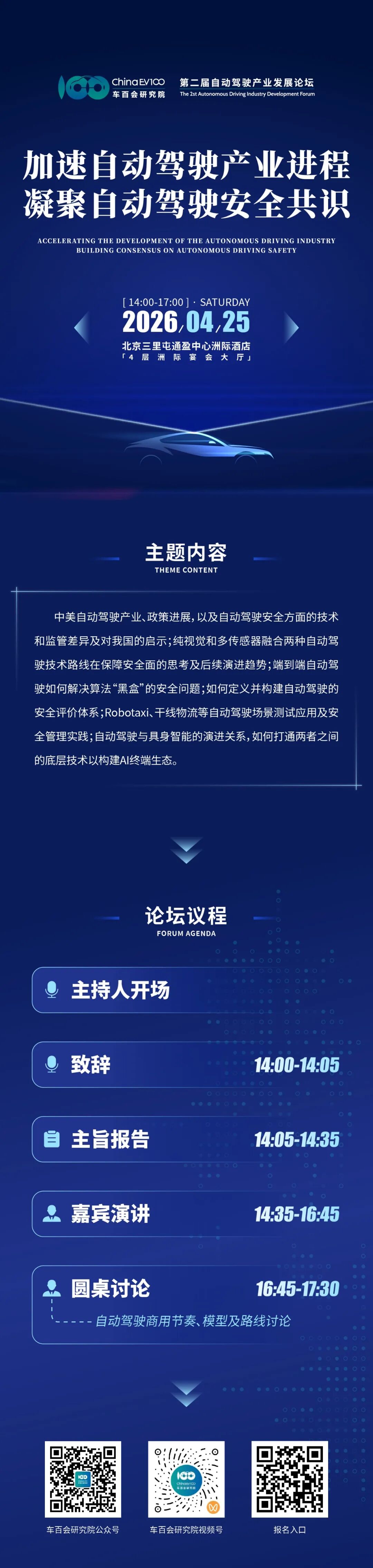 4月25日下午,第二届自动驾驶产业发展论坛在京召开。论坛由车百会研究院主办,引望智能技术有限公司、中国移动上海产业研究院、清华大学智能产业研究院联合主办。