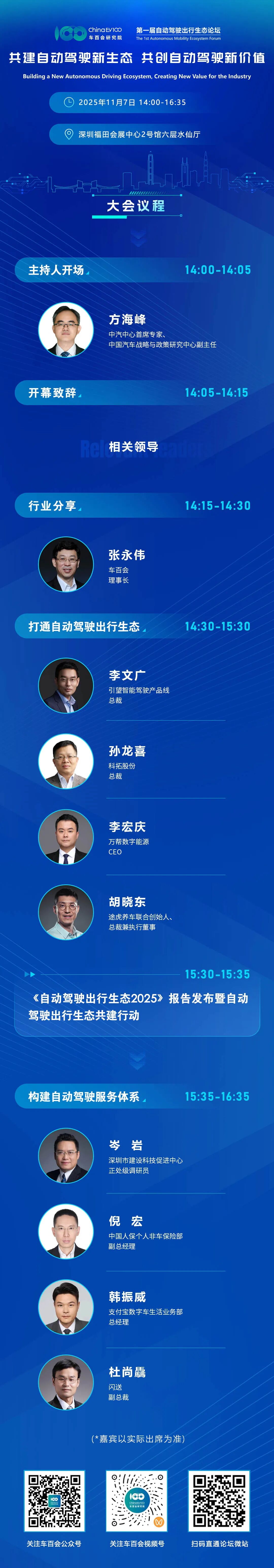 届时,会上将发布《自动驾驶出行生态2025》报告。该报告由车百智库与深圳引望智能技术有限公司联合参编单位共同编制,系统性探讨自动驾驶技术如何为“车后服务”生态赋能,让车的“停、充、养、用”升级为自动化、智能化服务,为自动驾驶构建高度自动化、无缝衔接、按需服务的智慧出行服务生态网络。