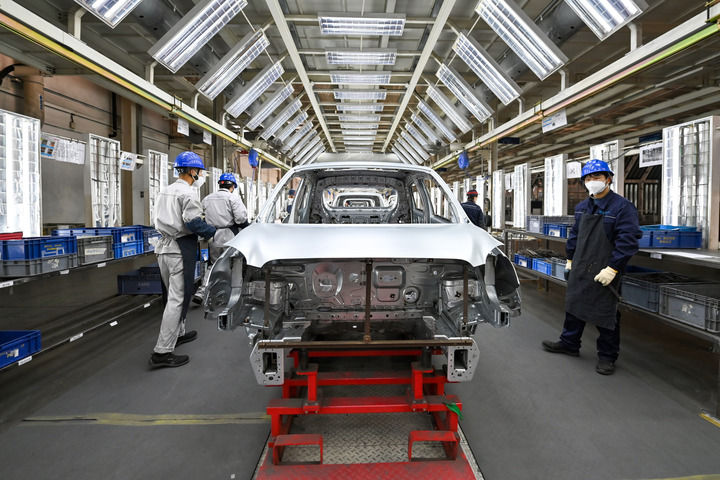 2025年5月13日,江苏省江都高新技术产业开发区某汽车生产企业的生产线。
